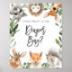 Dê aos seus hóspedes uma direção encantadora com nossos animais florestais imaginem o que há no cartaz da fralda, com cor d'água verde eucalipto garland e uma elegante fonte escrita à mão.