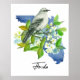 A poster decorated with mockingbird on a tree filled with orange blossoms on the state shape hand illustrated with ink and watercolor. Inspired by the state bird and state flower of Florida. Great souvenir and home decor of the Sunshine State!
