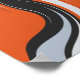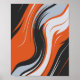 O design apresenta uma composição abstrato impressionante de curvas fluidas, semelhantes a ondas, em cor laranja-escuro, preto profundo, branco brilhante e cinzas moles. As linhas se torcem e varrem diagonalmente através da canvas, criando um sentido dinâmico de movimento e ritmo. O contraste entre tons claros e escuros enfatiza a laranja feroz, dando ao trabalho de arte uma aparência enérgica e fluida. O efeito global lembra as chamas, o movimento líquido ou um poderoso fluxo de energia captado em movimento.
