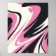 Um design abstrato impressionante que apresenta curvas fluidas e abrangentes em rosa vívido, preto profundo e branco macio. A composição combina listras vivas e dinâmicas com formas fluidas suaves, criando uma sensação de movimento e contraste. A paleta de alto contraste dá ao trabalho de arte uma sensação moderna e enérgica, perfeita para espaços contemporâneos e na moda.