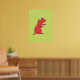 Impressão de poster de dinossauro bonito com uma ilustração colorida de um dinossauro T-Rex vermelho com um fôlego feroz sobre fundo verde. Esta impressão fofa tem cores vivas e é adequada para crianças e para crianças crescidas também. :)