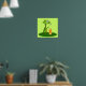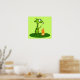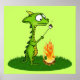Um belo dragão de desenho animado com grandes olhos devotos e uma buzina amarela tostando um marshmallow sobre um fogo do acampamento. Arte digital original de Taylor Addams.