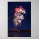 Fogos de artifício poster do Dia da Independência em 4 de julho. Seja patriota e comemore a América com esta maravilhosa tendência projetada, fotografia moderna. Cor branca vermelha e azul. Fotografia da Imagem Marg Seregelyi.