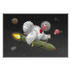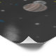 Uma poster de Ação de Graças divertida e doce onde a Turquia escapou da Ação de Graças e está viajando pelo universo com a ajuda do seu foguete.