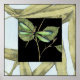 Esse desenho de folhas de Jennifer Goldberger apresenta um inset de uma libélula sobre fundo negro. A sensação noturna do inset contrasta com a sensação diurna do impressão das folhas. Confira!