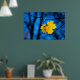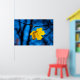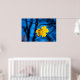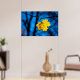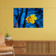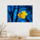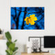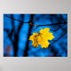 Imagem de uma folha de mapa amarela solteiro num galho contra o fundo azul escuro. Um poster para decorar uma parede de uma casa ou de um escritório.
