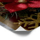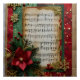 Uma carta em camadas com papel vermelho texturizado, sotaques dourados, padrão de folha verde e partituras. Adorados com flocos de neve ouro, morangos vermelhos, ramificações de pinheiro, e um arco vermelho com bordas de ouro, criando um tema festivo de Natal.