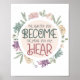 Melhore a decoração da sua casa com um poster de arte feito por medida. Quanto Mais Silencioso Você Se Torna Quanto Mais Você Pode Ouvir Uma Citação Inspiracional Pastel Floral Wreath Poster. ideia de presente de excelente.
