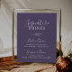 Este sinal mínimo de poster de bebida roxa de ameixa de folha é perfeito para um casamento de boho. O design de tom de joia apresenta uma simples silhueta verde de folha em uma violeta azul escura roxa com estilo boho minimalista.