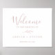 Este poster de boas-vindas de rosa de folha empoeirado é perfeito para um casamento elegante. A design apresenta uma simples silhueta verde em rosa claro e pincelado com estilo clássico minimalista. Personalize o poster com o nome da noiva e do noivo, e a data do casamento.