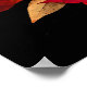 Esta poster esplêndida apresenta cores folígicas de vermelho, laranja, amarelo e marrom em um fundo preto.