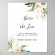 Essa folhagem tropical dourada compartilha o sinal de hashtag de amor é perfeito para um casamento ou chá de panela rústico. O design apresenta ouro de aquarela pintada à mão e folhagem verde tropical com flores escamoteadas elegantes. Personalize a placa com a hashtag de casamento.