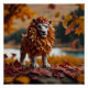 Entre no reino encantador da natureza com este cativante pôster de parede apresentando um majestoso leão feito inteiramente de vibrantes folhas de outono.