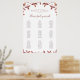 Este assento rústico de 9 mesas é perfeito para um casamento na temporada de outono. As vermelhas, laranjas e castanhos trazem calor para a decoração da recepção de casamento.
