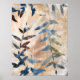 Folhas em camadas de abstrato e marcas de mídia mistas em uma paleta de cores azul e neutra.