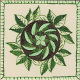 Este poster imprimível apresenta um padrão semelhante a uma coroa com folhas verdes. As cores são verdes, creme e marrom. Esta imagem vem de um design de azulejo original. Do Azulejo de Oregon Fay Jones Day
