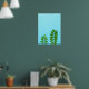 Poster Folhas verdes minimalistas em fundo azul botânico