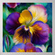 Poster Folhas verdes, púrpura e dourada, pansos, azuis