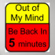 Fora da minha mente. Volte em 5 minutos. Um sinal amarelo brilhante e vermelho de cautela afirmando o estado de sua mente. Uma camiseta engraçada permite que outros saibam que você sai por um casal de minutos. Não se preocupe, você já voltará.