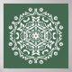 Esta mandala branca senta-se sobre um fundo verde da floresta. As cores são pacíficas. Parte da coleção Mola Mandala.