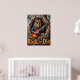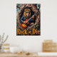 Esta trabalho de arte única apresenta um legal leão vestindo óculos de sol e uma jaqueta de couro, tocando apaixonadamente um violão elétrico enquanto aninhado dentro de um tronco de árvore oca. Verde deixa espiar o quadro, e o texto em negrito "Rock or Die" fica abaixo. As pinceladas grossas e texturizadas da pintura dão uma qualidade dinâmica e expressiva à madeira e ao pelo, incorporando um espírito musical cru e indomado.