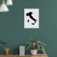 A forma da Itália em preto e branco. No entanto, você pode adicionar uma cor de fundo se quiser. Você também pode adicionar uma mensagem de texto personalizada para criar esse presente perfeito para seu italiano favorito.