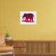 Silhueta de um elefante baseado em um anúncio antigo da década de 1800 em um gradiente de vermelho de framboesa rosa a escuro.