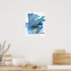 Uma impressão de pôster decorada com um mergulhão-comum e um de seus filhotes montado em suas costas flutuando em um lago calmo com uma flor de lady slipper rosa e branca sobre a forma do estado desenhada com tinta preta e pintada com aquarela. Inspirado no pássaro do estado e na flor do estado de Minnesota. Ótimo para quartos de dormitório universitário ou qualquer pessoa que goste do "Estado da Estrela do Norte!"