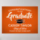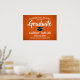 Adicione um toque personalizado a uma comemoração de faculdade ou segundo grau com um poster de 18"x24" preto, cor de laranja, branco e preto. A imagem e todos os textos neste modelo de sinal baixável são simples de personalizar, e as cores podem ser alteradas com a ferramenta Zazzle design. O design apresenta um boné de conselho de argamassa, uma elegante tipografia clássica e uma caligrafia na moda moderna. Este poster de formatura imprimível é uma maneira elegante de dar boas vindas a amigos e familiares para uma celebração especial. Parabéns ao formando!