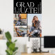 Graduação 2025 Foto Colage Black and White Retractable Banner comemorando suas conquistas. Adicione suas fotos de graduação favoritas ou quaisquer fotos que você mais ame para criar uma colagem de fotos simples com estilo de grade. Adicione seu nome ou nome de formando, faculdade e classe em tipografia branca sobre fundo preto.