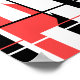 Recorte os tamanhos de quadros padrão ou sua própria preferência pessoal (disponível em tamanhos pequenos a grandes de várias proporções e diferentes tipos de papel). Apresentado é um design geométrico, abstrato em linhas e formas de preto e vermelho brilhante sobre fundo branco, que é contemporâneo mas inspirado pelo estilo de design Moderno do século do Médio.