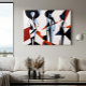 Uma fusão ousada de geometria e cor. Esta obra de arte moderna reinterpreta a figura humana através de formas fragmentadas e uma paleta vibrante. Perfeita para aqueles que procuram uma peça de alto impacto que provoque reflexão e adicione um toque sofisticado e vanguardista a qualquer ambiente.