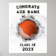 Design de basquete de enterrada para jogador de basquete sênior. Edite o texto para adicionar nome e ano.