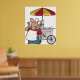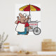 Um vendedor de cachorros-quentes com seu carrinho de cachorro-quente. Esta design parece realmente eficaz nestes Poster