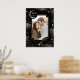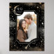 Um impressão de fotos de casamento com tema celeste, com um design preto e dourado com lua crescente, estrelas disparando, nuvens de céu noturno, e constelações. Esta manutenção personalizada, completa com suas iniciais e sua foto favorita, é perfeita para pendurar no seu quarto. Ele também faz um belo poster de fotos de noivado.
