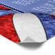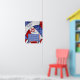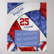 Adicione uma foto da equipe a uma poster comemorativa de vôlei dessas meninas que apresenta um vôlei azul, vermelho e branco ampliado de forma abstrata como pano de fundo sobre o qual você pode personalizar o nome da escola, mascote da equipe, ano escolar, número e nome da camisa - um padrão caleidoscópico floral é misturado com os painéis azul e vermelho e um padrão de espiral de abstrato de arte é misturado com os painéis brancos por katz_d_zynes