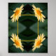 Uma flor de margarida amarela impressionante se aproxima de um quadro de abstrato de fundo verde-escuro criado da minha foto original e adicione sua poster de foto. Fotografia da Flor por Susan.