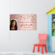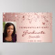 Para uma festa de formatura. Um fundo rosa de gradiente dourado com estrelas caindo, pingando. Personalize e adicione sua própria foto do formando. Texto; Parabéns! O texto: Formando e o nome são escritos com um script de estilo moderno, escrito à mão.