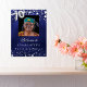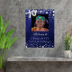 Um cartaz de boas-vindas para uma festa de aniversário de 70 anos. Um fundo azul-marinho com estrelas prateadas elegantes e falsas. A cor azul é irregular. Personalize e adicione uma foto, nome e texto. Letras brancas.