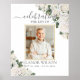 Lindo cartaz de funeral com foto floral de rosas brancas / sinal de memorial de celebração de vida. Personalize facilmente e rapidamente, basta clicar no botão "Editar Usando Ferramentas de Design" para modificar o texto, a redação, o estilo da fonte, o tamanho da fonte, a cor da fonte e organizar a fotografia. Você também pode adicionar ou remover texto e mover ou remover imagens. Também disponível em formato de download digital instantâneo. (c) Heavenly Paperie