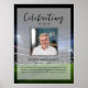 O pôster memorial perfeito para cumprimentar familiares e amigos ao entrarem na celebração da vida de seu ente querido. O design apresenta uma foto pessoal quadrada, 5 linhas de texto personalizado e uma foto de fundo de um estádio de futebol. Você pode facilmente trocá-la por uma foto de fundo própria. Clássico, porém único - este modelo é muito fácil de personalizar e também será uma lembrança maravilhosa.