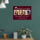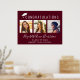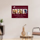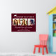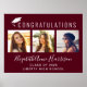 Cartaz moderno de festa de formatura em vermelho burgundy com "PARABÉNS" em branco e uma ilustração de um boné de formatura branco no topo, uma colagem de 3 fotos, o nome dela em uma fonte branca estilosa, e o ano de conclusão e nome da escola em tipografia branca simples. As cores do fundo e da tipografia podem ser editadas para as cores da sua escola selecionando "editar no ferramenta de design".