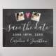 Deixe todos saberem para Salvar a data com este adereço/cartaz. Segure-o em sua sessão de fotos de engajamento ou pendure-o na parede durante uma festa de engajamento. O design apresenta 2 de suas fotos e letras à mão contra um fundo de quadro-negro impresso falso. Divertido e moderno, mas também sofisticado e elegante - complementa muitos dos estilos de casamento de hoje.