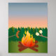 Este design apresenta marshmallows em um palito brinjando sobre um fogo. O fundo é uma floresta com céu ao anoitecer. A parte de trás desta carta apresenta uma floresta de árvores. Estas posters seriam excelentes para um acampamento de verão ou ao ar livre. Clique em Personalizar para adicionar seu texto. A fonte de madeira Packenham funciona especialmente como excelente para este design.