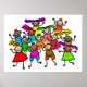 Um desenho animado bonito de um grupo de meninos e meninas felizes e diversos acenando e sorrindo. Personalize e escolha facilmente a sua própria cor de fundo ou adicione texto. Imagem disponível em vários presentes e produtos.