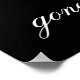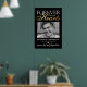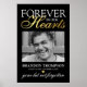 Cartaz memorial de funeral elegante com uma foto de seu ente querido perdido, o texto "para sempre em nossos corações", o nome dele, datas de nascimento e morte, um coração de folha de ouro falso e a frase de lembrança "ido mas não esquecido".