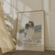 Poster moderno e minimalista de fotos de funeral para celebrar a vida de seu ente querido em um estilo minimalista e simples de design com uma fonte informal escrita manual. O design pode ser facilmente personalizado com sua própria foto e texto para criar um tributo especial para o funeral, memorial ou celebração da vida do seu ente querido. A imagem mostrada é apenas para fins de ilustração para ser substituída pela sua própria foto. A imagem mostra uma jovem com cabelo louro ondulado vestindo um chapéu e um vestido branco de suéter sentado em um jipe dourado nas montanhas abraçando um adorável cachorro preto. #funeral #decor #poster