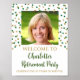Poster de festa personalizada de retirada de fotos com ouro e confete verde.