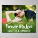 Celebre o seu amor com uma poster de fotografia de tipografia de tendências. Moderno e na moda, este design personalizado apresenta um campo de texto editável contendo "Forever My Love" em letra casual de script, um campo de texto editável para os nomes dos casais em sans serif elegante e um modelo para uma foto de sangria de cheio. Personalize facilmente este design para corresponder ao seu estilo clicando em "Personalizar" para ir para a ferramenta design e adicionar o seu próprio texto ou detalhes personalizados.
