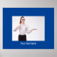 Sua foto exclusiva e seu texto personalizado destacam esse poster azul profundo.